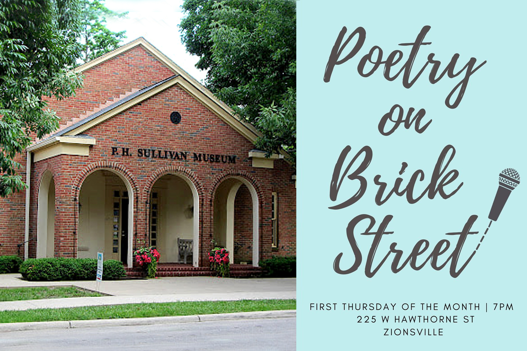 Brick Street Poetry Inc, a non-profit organization registered in the State of Indiana, is a tax-exempt non-profit organization under IRS Code 501(c)(3). Brick Street Poetry Inc. publishes the Tipton Poetry Journal, hosts the monthly poetry series Poetry on Brick Street, and sponsors other poetry-related events.